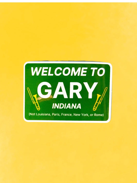 Gary Indiana Trumpets Music Man Road Sign Sticker Broadway Inspired Theatre