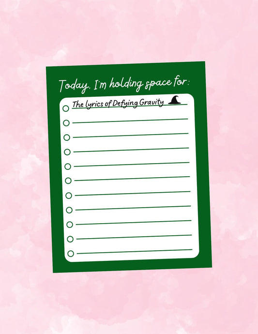 Holding Space Notepad Defying Gravity Wicked Witch To Do List Broadway Musical Theatre Gift