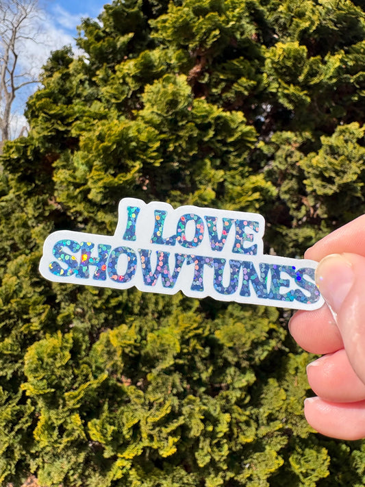 I Love Showtunes Blue Sparkly Waterproof Vinyl Sticker Broadway Theatre Lover Inspired